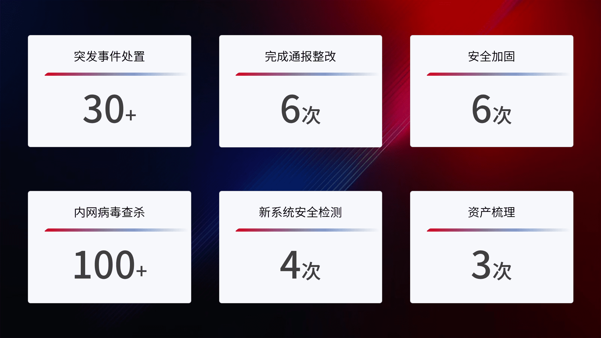 网络安全加固与风险管理:通过技术加固手段,,如加强区域隔离,,缩减攻击内网横向移动的范围;优化现有网络安全管理制度,,降低网络威胁暴露面,,,,减少被黑客攻击的可能性。。。